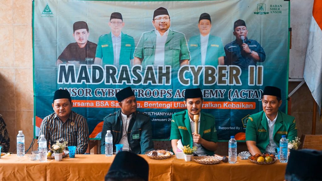 PC GP Ansor Sampang menggelar Madrasah Cyber II – Ansor Cyber Troops Academy (ACTA) dengan mengusung tema “Bersama BSA Kabupaten Sampang, Bentengi Ulama Viralkan Kebaikan.” Acara ini berlangsung pada 6-7 Januari 2024 di Pondok Pesantren As-Sulthaniyah, Desa Nepa, Kecamatan Banyuates, dan diikuti oleh kader Ansor dari berbagai anak cabang.